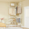 - [SISTEMA TELESCOPICO VERSATILE] Tre pali telescopici verticali, tre barre appendiabiti regolabili e quattro ripiani consentono di creare un armadio aperto / stand appendiabiti personalizzato per camera da letto, corridoio o cabina armadio – senza fori permanenti.